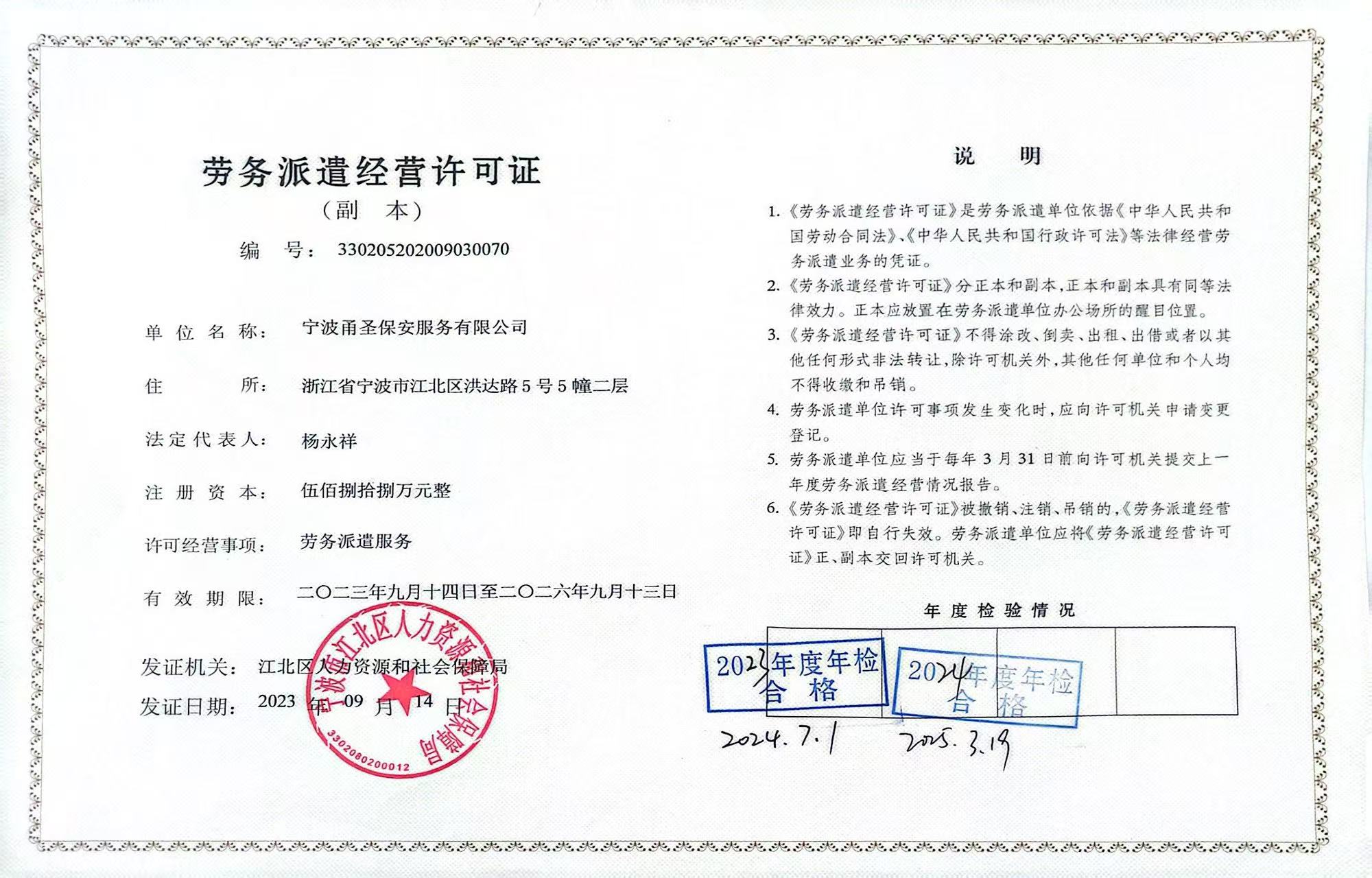 劳务派遣证书