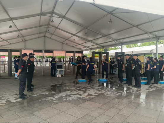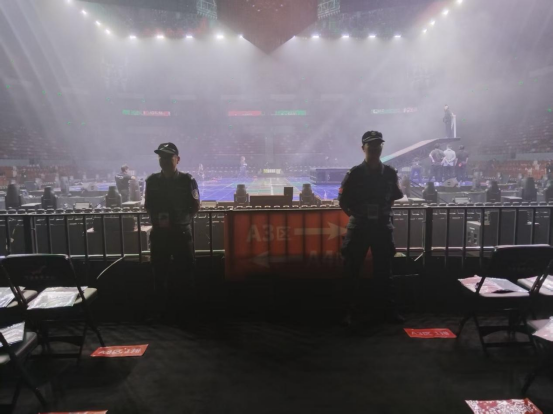 战前动员 高位统筹 在大型活动安保工作中,前期筹备是最关键的一环。此次演唱会演出时长虽然只有两个半小时,但中午12时30分,安保、安检组就已进入指定位置备勤,指挥部也开始了布岗工作;13 时00分,第一批参勤人员到岗开展各项工作;15:30全体参勤人员均已到岗开展各项工作。而直到晚上10时,场馆内外还值守着众多执勤人员。