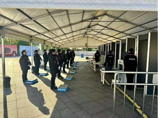 高标准落实 按照本次盛典安保安检工作“安全第一、预防为主”的要求,宁波甬圣保安组织部门在反复实地踏查、分析研究、风险评估的基础上,周密制定了科学的安保安检工作方案、应急处突预案和专项工作方案。在指挥部统一指挥下,全程组织、督导安保安检工作,绷紧思想之弦、恪守岗位之责,高站位、高标准、高质量落实安保措施,切实做到工作预案“零疏漏”、工作部署“零缺陷”、工作过程“零失误”、工作执行“零偏差”。盛典期间,累计出动安保安检后勤力量100余人次。